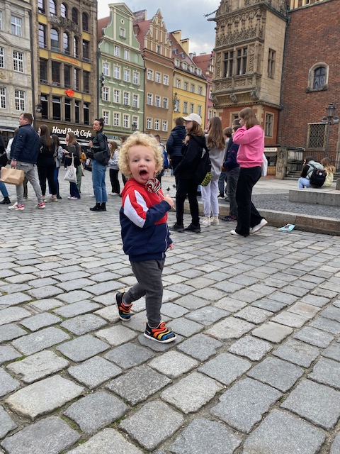 We have been in Wroclaw for just over a week. We stayed in a hotel for the first 3 nights that was in the heart of the old town. On Monday on the first of this month we moved into a rented apartment. It is about a 20 minute walk from where we are now to that hotel – we are pretty close the old town centre. The flat is cosy and modern and we were lucky to have found this place. It is a modest sized flat so finding a quiet corner is a bit of a challenge as the wild Bunster is all over the place, running up and down. We spent a lot of time Ubering to shops this week as we needed to buy a bunch of stuff: kettle, microwave oven, towels, blankets, kitchen stuff, etc. We still have a bit of a list left. The one Uber driver was from Belarus. A warm, young man called Leo. We chatted with him in English and Russian. He said he cannot go back home to his country. I imagine there are many young people here with a similar story.